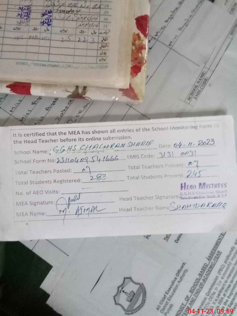 | EMIS Code: 31310031 | Name of School: GGHS CHACHRAN SHARIF | |||