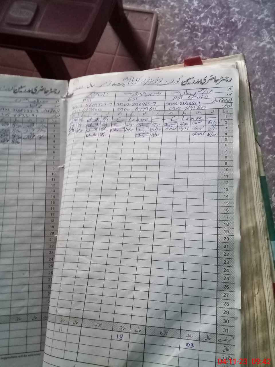 | CNIC | Full Name | Designation | R/C | Absence During Last Calender Month |