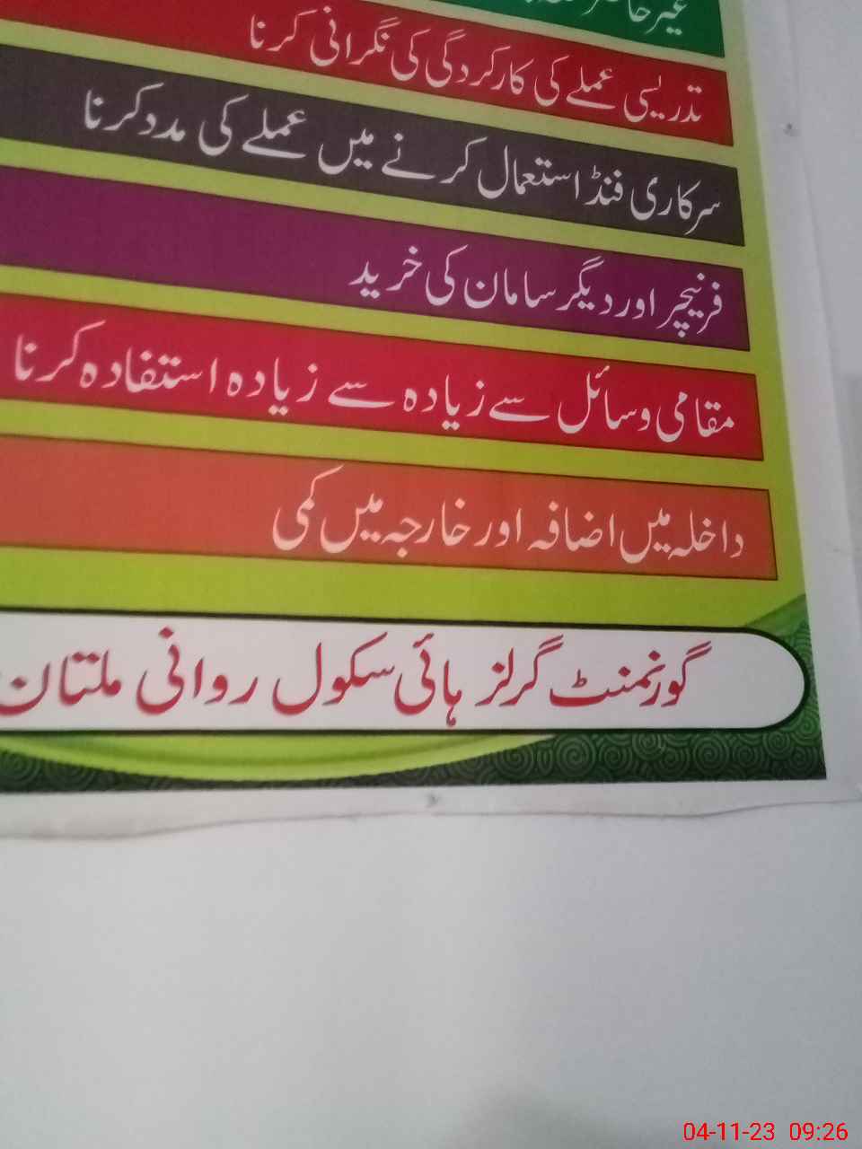 | EMIS Code: 36130094 | Name of School: GGHS RAWANI MULTAN | |||