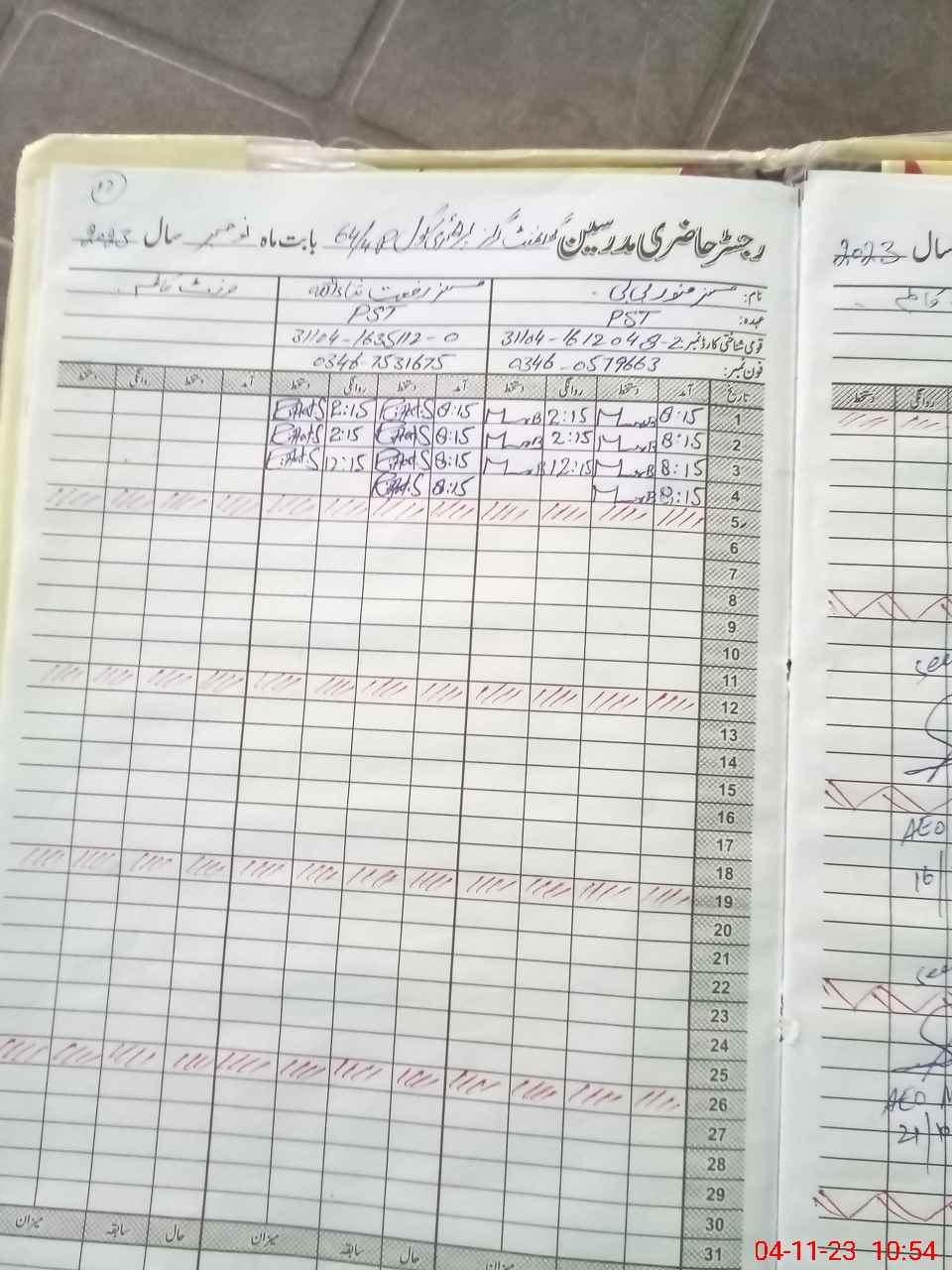 | Name: MU**** BI**** Designation: (School Headmaster's/Headmistress's) PST Phone/Cell Number: 03**** |