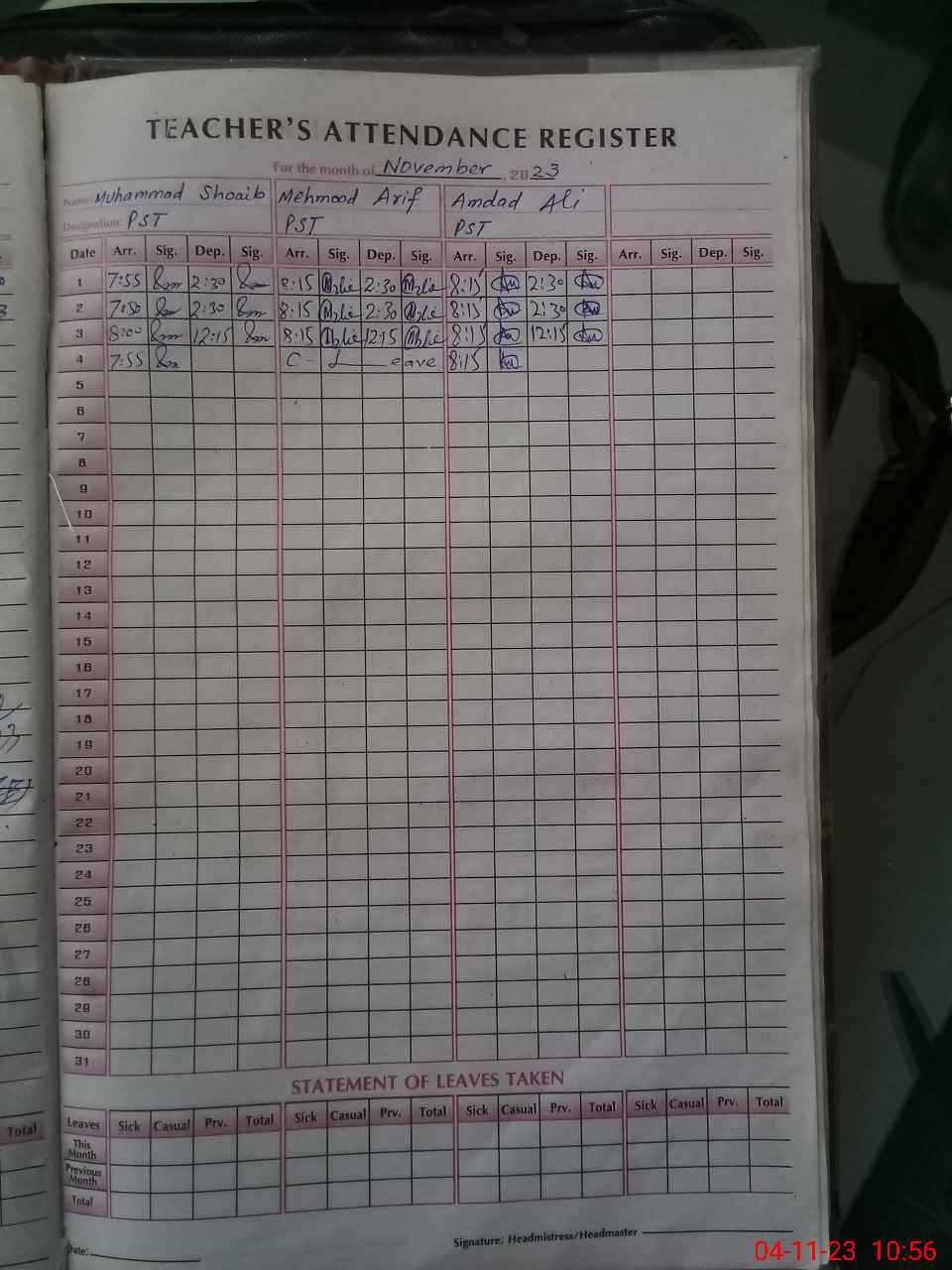| Name: Mu**** Sh**** Designation: (School Headmaster's/Headmistress's) PST Phone/Cell Number: 03**** |