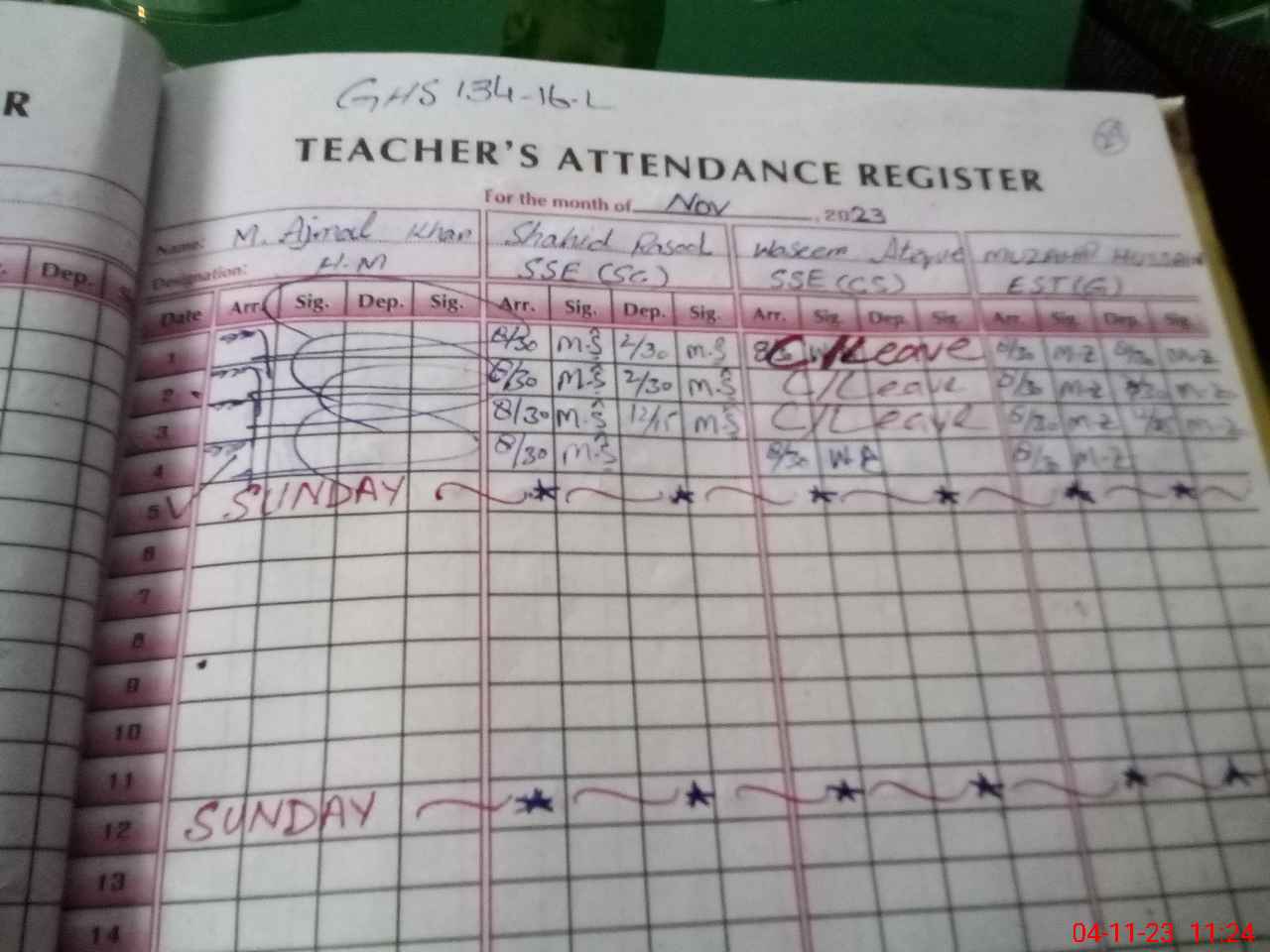 | CNIC | Full Name | Designation | R/C | Absence During Last Calender Month |