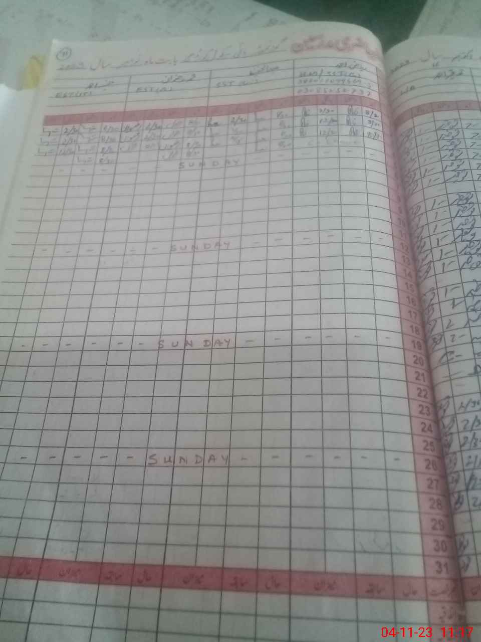 | CNIC | Full Name | Designation | R/C | Absence During Last Calender Month |