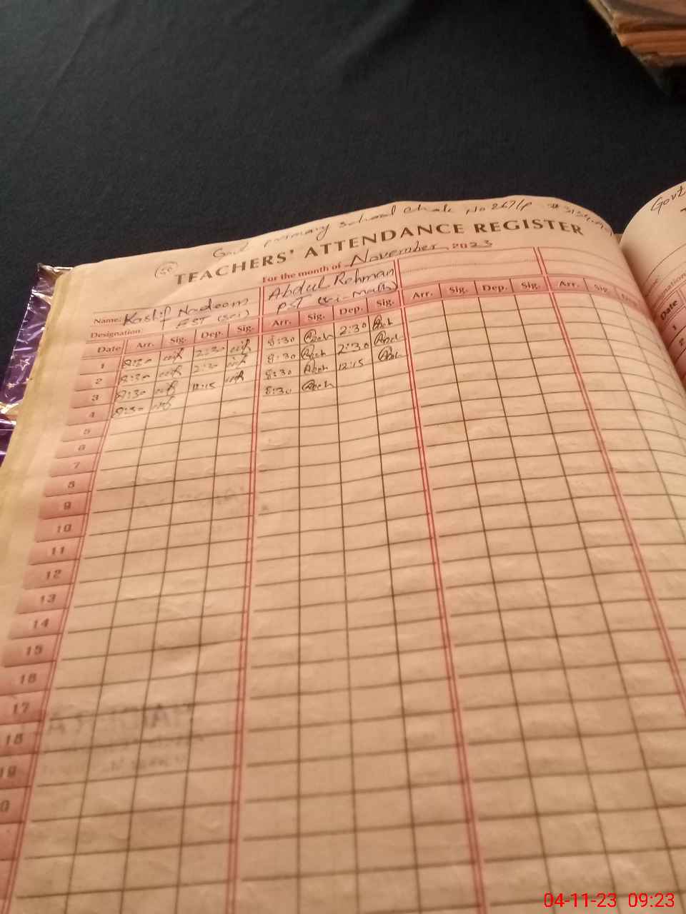 | Name: Ka**** Na**** Designation: (School Headmaster's/Headmistress's) EST Phone/Cell Number: 03**** |
