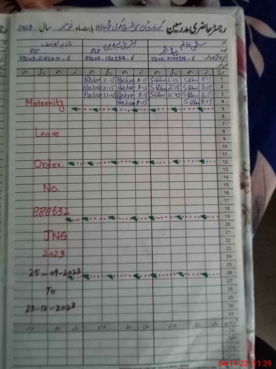| Leave | Duty | Absent | Maternity | Medical | Ex- Pak |