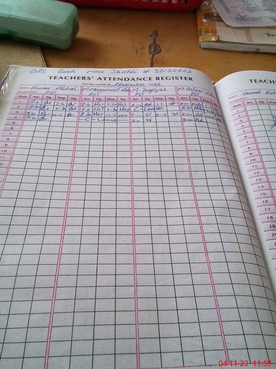 | CNIC | Full Name | Designation | R/C | Absence During Last Calender Month |