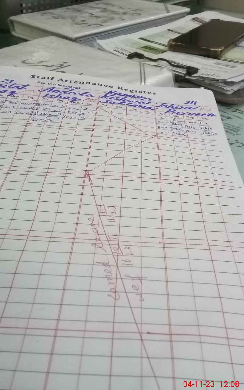 | CNIC | Full Name | Designation | R/C | Absence During Last Calender Month |