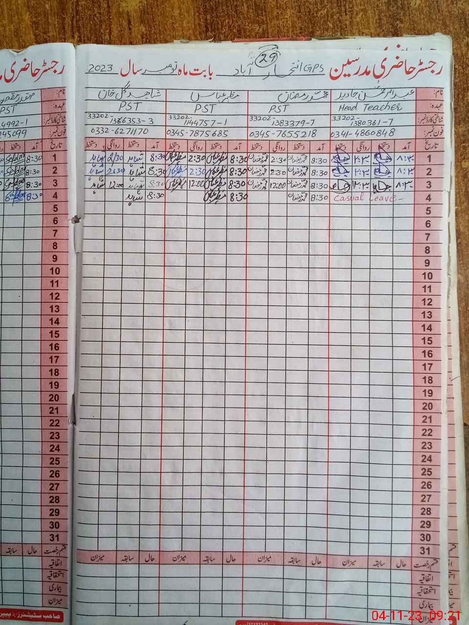 | Name: AB**** RA**** JA**** Designation: (School Headmaster's/Headmistress's) PST Phone/Cell Number: 03**** |