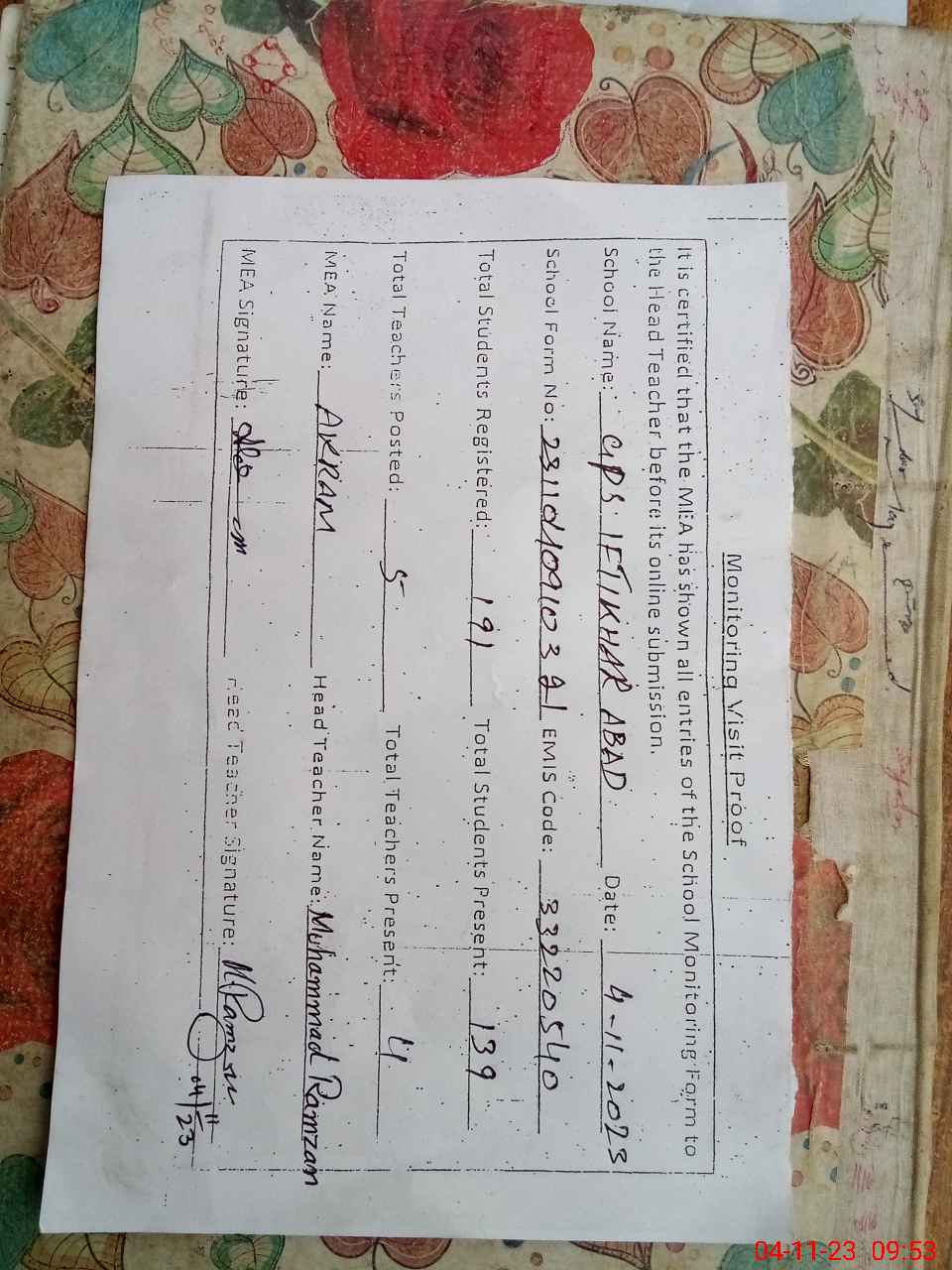 | EMIS Code: 33220540 | Name of School: GPS IFTIKHAR ABAD | |||