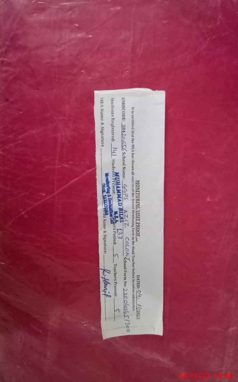| EMIS Code: 38420656 | Name of School: GGPS AZIZ COLONY | |||