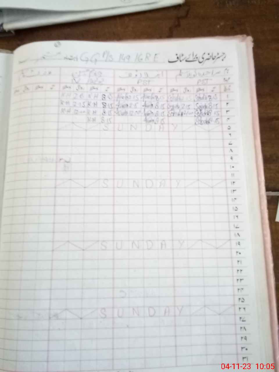 | CNIC | Full Name | Designation | R/C | Absence During Last Calender Month |
