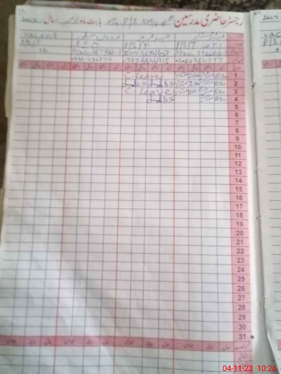 | Leave | Duty | Absent | Maternity | Medical | Ex- Pak |