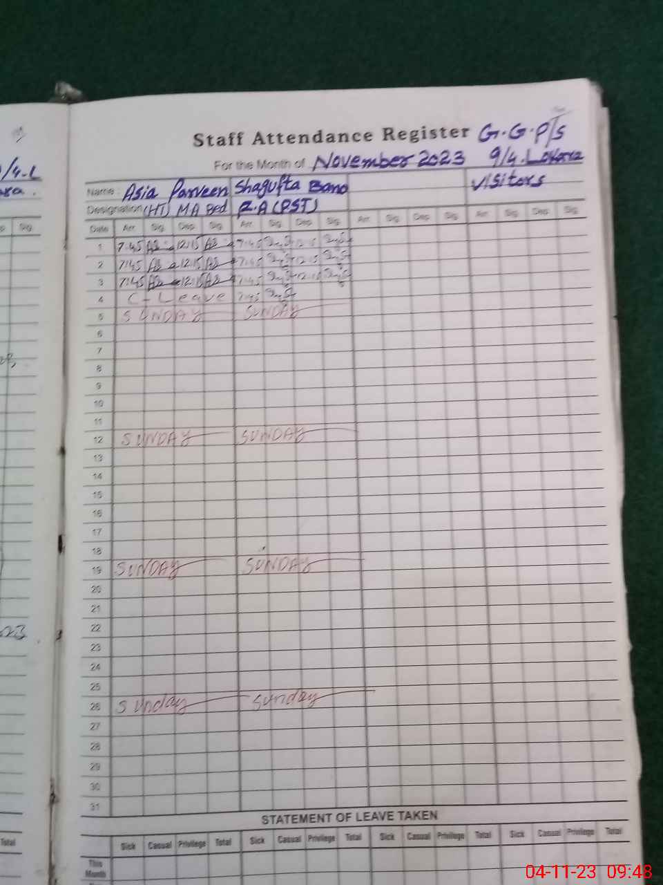 | Name: AS**** PA**** Designation: (School Headmaster's/Headmistress's) PST Phone/Cell Number: 03**** |