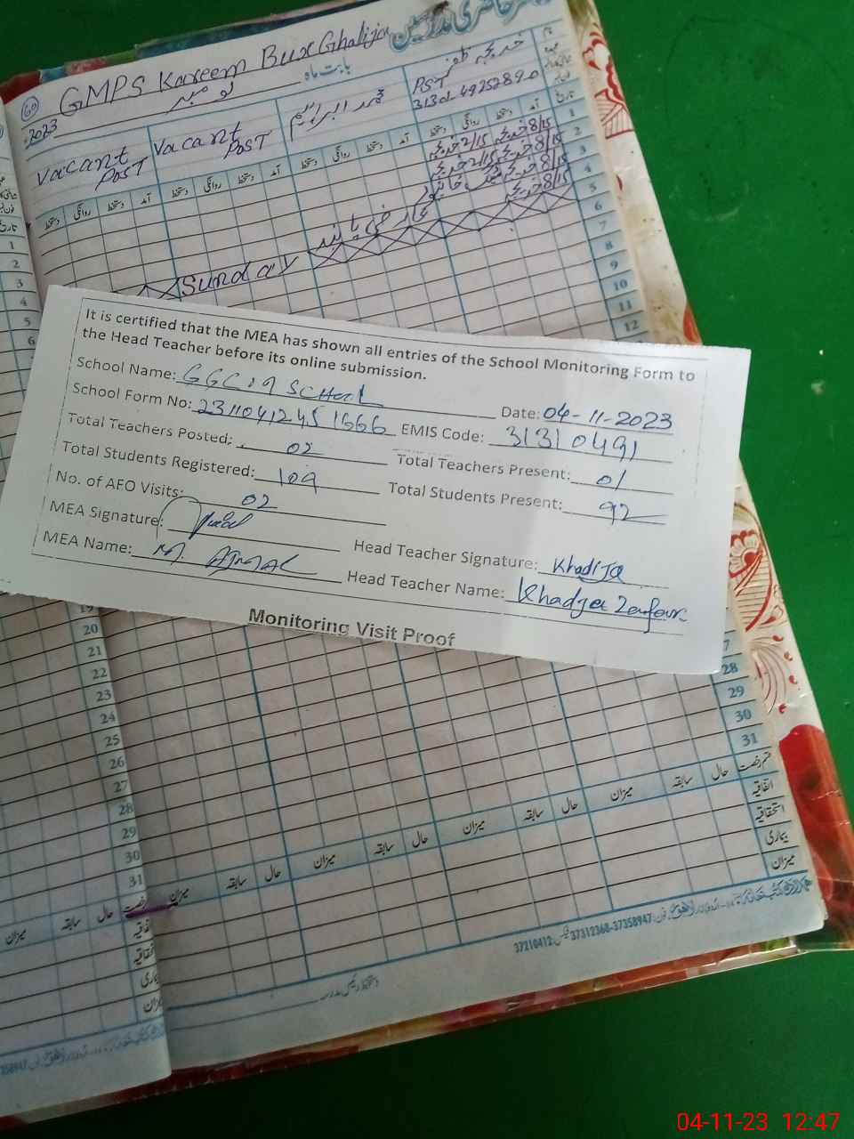 | EMIS Code: 31310491 | Name of School: GMPS KARIM BUX GHALEJA | |||