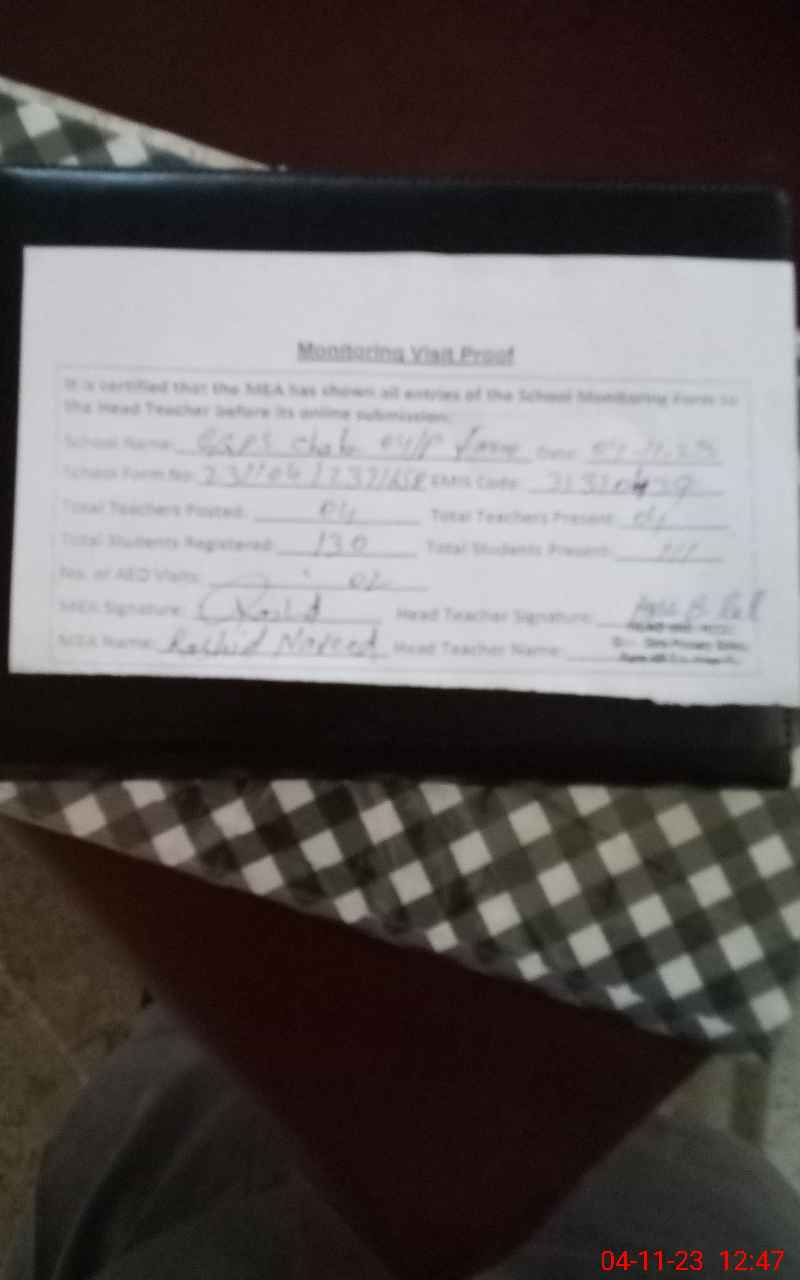 | Attendance Register | Head Teacher | MEA with School | Visit Proof |