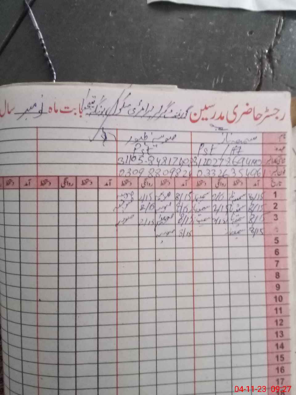 | Name: So**** Za**** Designation: (School Headmaster's/Headmistress's) PST Phone/Cell Number: 03**** |