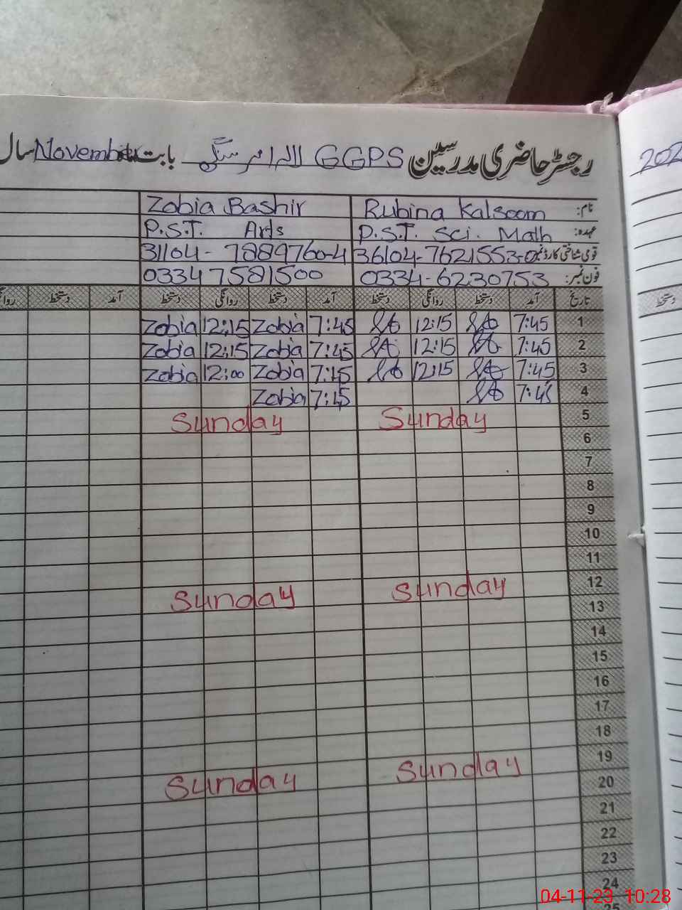 | Name: RU**** KA**** Designation: (School Headmaster's/Headmistress's) PST Phone/Cell Number: 03**** |