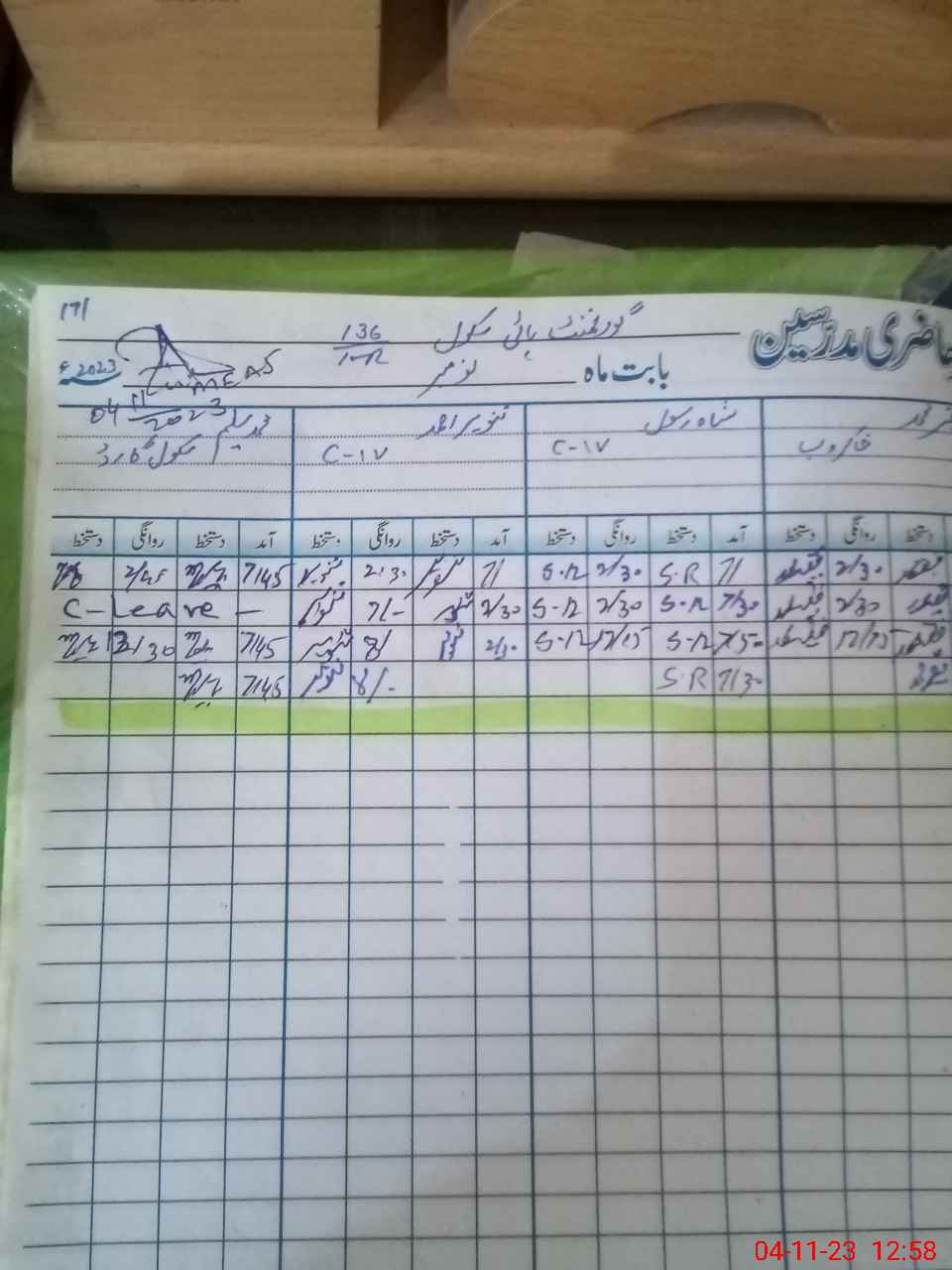 | CNIC | Full Name | Designation | R/C | Absence During Last Calender Month |
