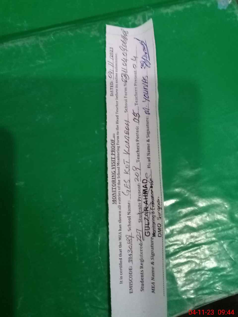 | Monitoring Date: 04-11-2023 | Start Time: 04-11-2023 09:06 AM | End Time: 04-11-2023 09:44 AM | Name of MEA: GU**** AH**** | |