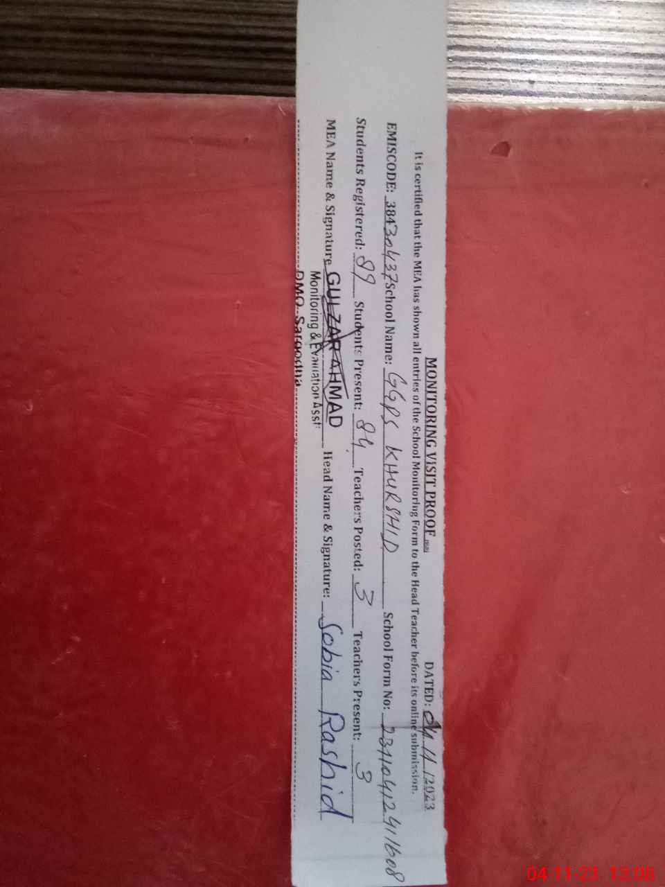 | EMIS Code: 38430437 | Name of School: GGPS KHURSHID | |||