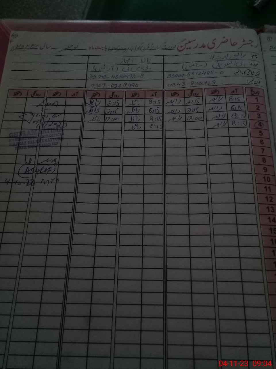 | Name: RA**** IR**** Designation: (School Headmaster's/Headmistress's) ESE Sci_math Phone/Cell Number: 03**** |