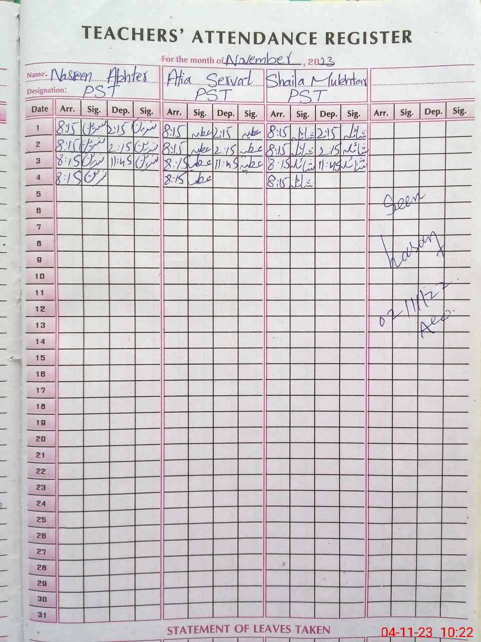 | Name: NA**** AK**** Designation: (School Headmaster's/Headmistress's) PST Phone/Cell Number: 03**** |