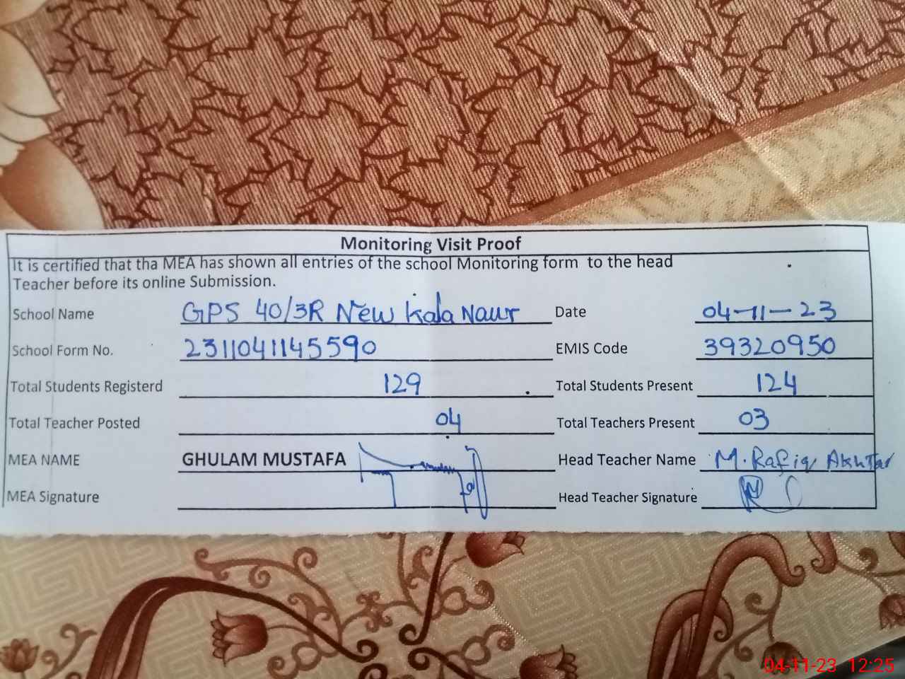 | EMIS Code: 39320950 | Name of School: GPS 40/3.R NEW KALA NAUR | |||