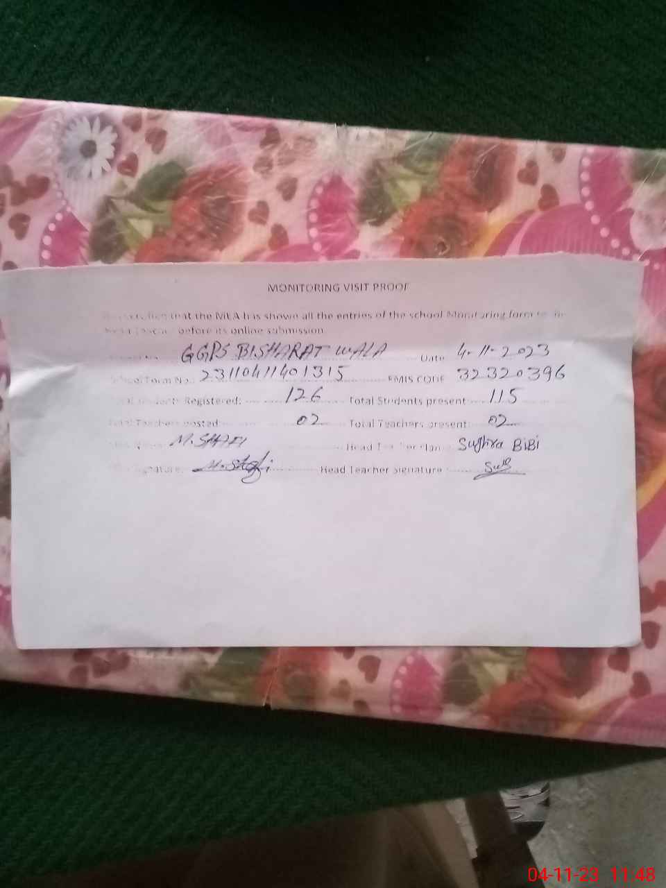 | EMIS Code: 32320396 | Name of School: GGPS BASHARAT WALA | |||