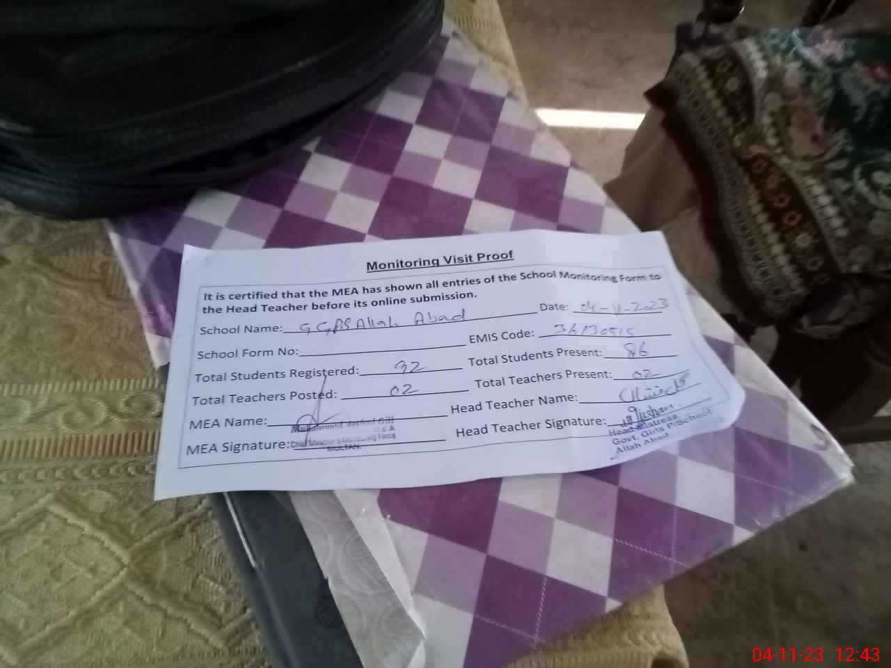 | EMIS Code: 36130515 | Name of School: GGPS ALLAH ABAD MULTAN | |||