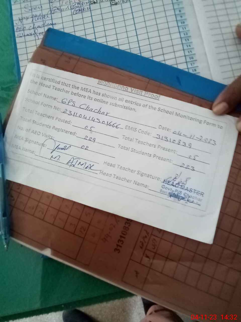 | EMIS Code: 31310839 | Name of School: GPS CHAHCHAR | |||