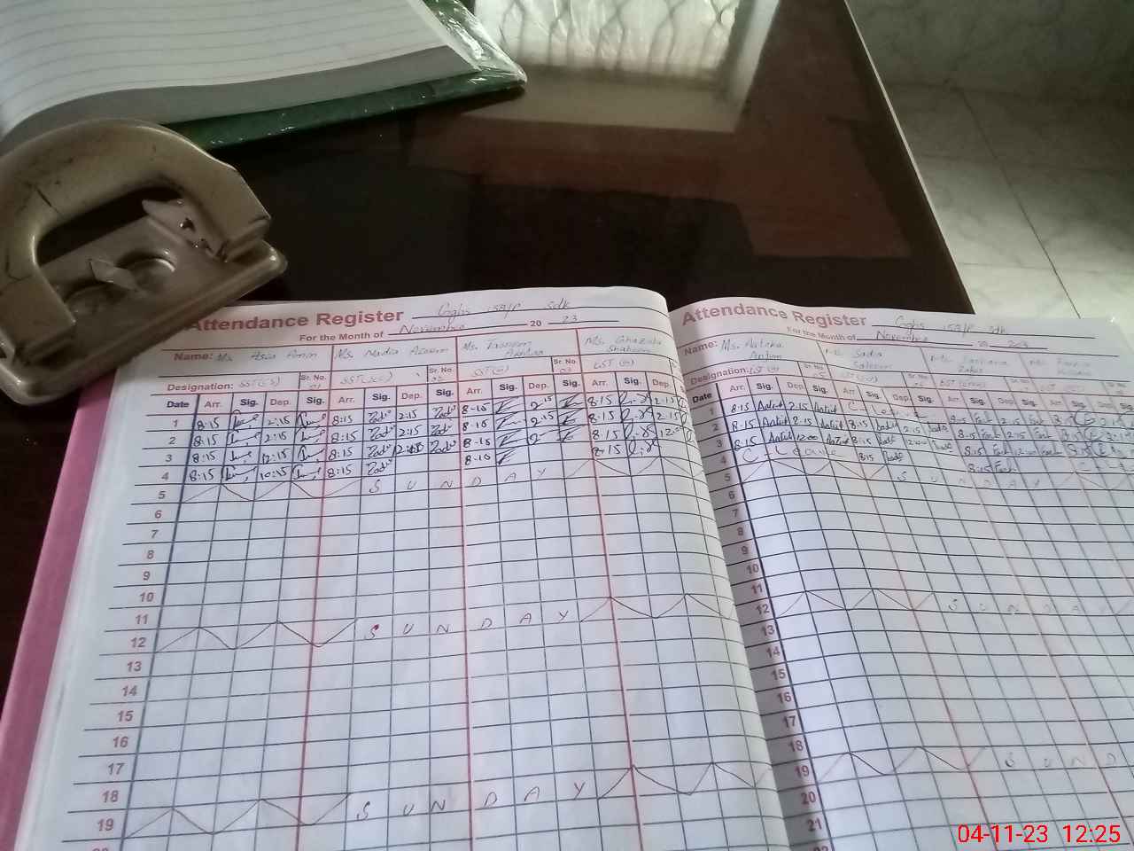 | CNIC | Full Name | Designation | R/C | Absence During Last Calender Month |