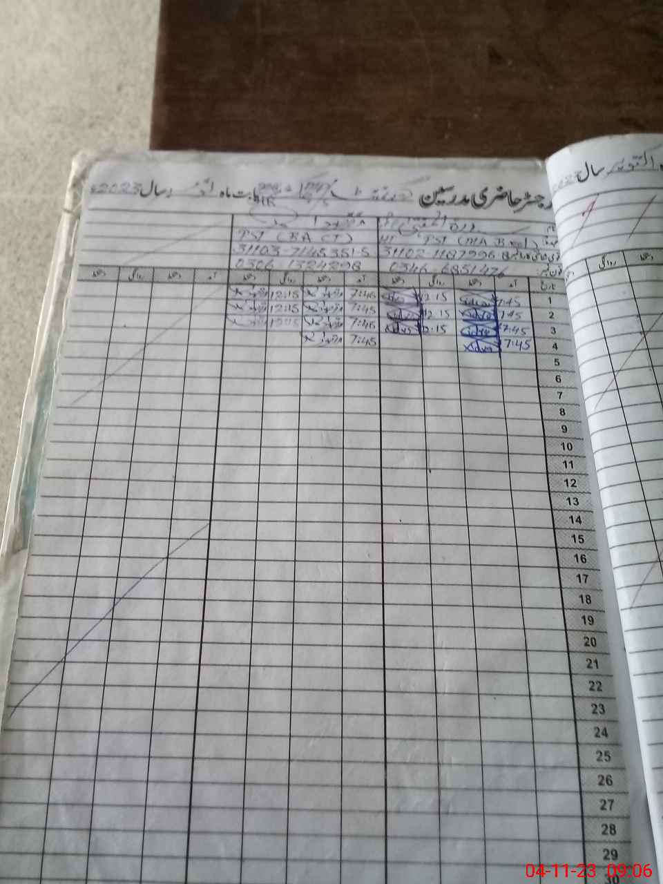 | CNIC | Full Name | Designation | R/C | Absence During Last Calender Month |