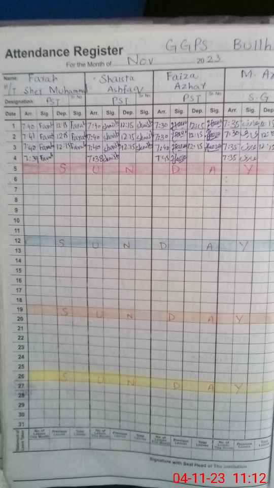 | CNIC | Full Name | Designation | R/C | Absence During Last Calender Month |