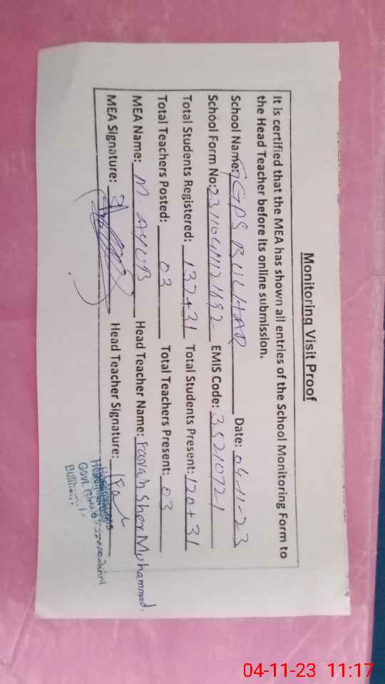 | EMIS Code: 35210721 | Name of School: GGPS BULHAR TEHSIL MODE TOWN | |||