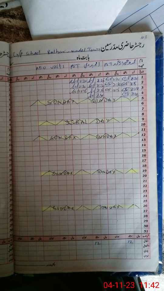 | EMIS Code: 35210337 | Name of School: GPS BALHAR TEHSIL MODEL TOWN | |||