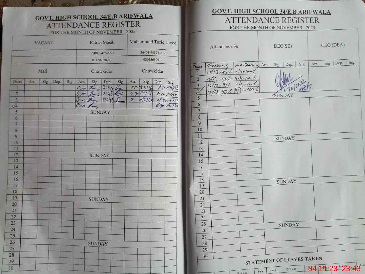 | EMIS Code: 39220007 | Name of School: GHS 34 EB ARIF WALA | |||