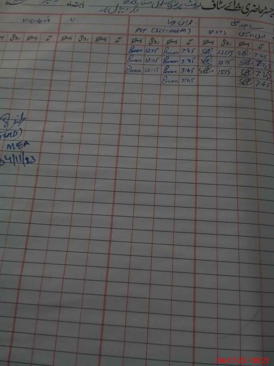| Name: Sa**** Al**** Designation: (School Headmaster's/Headmistress's) PST Phone/Cell Number: 03**** |
