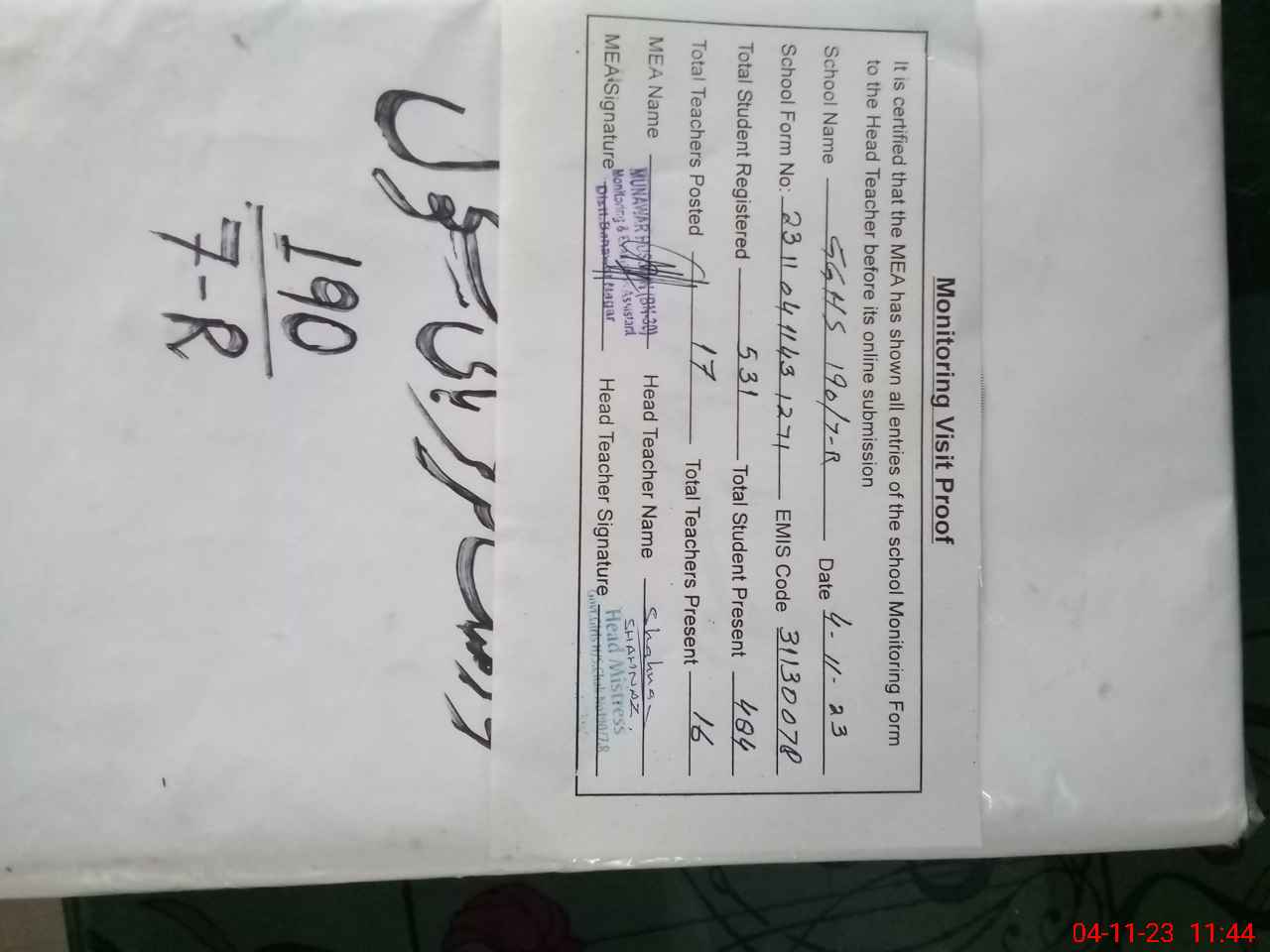 | EMIS Code: 31130078 | Name of School: GGHS CHAK NO 190/7-R | |||