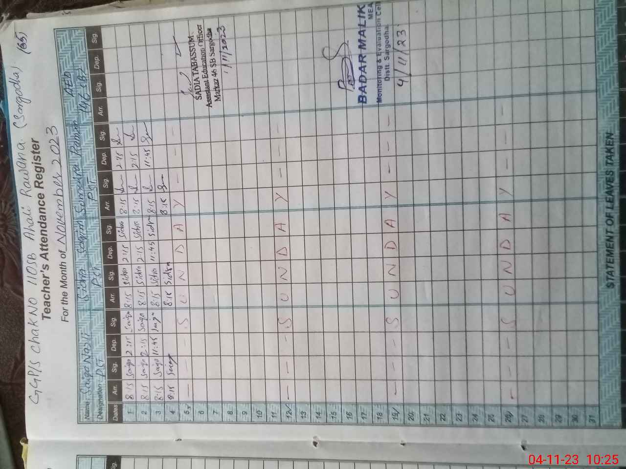 | Name: Si**** Sa**** Designation: (School Headmaster's/Headmistress's) PST Phone/Cell Number: 03**** |