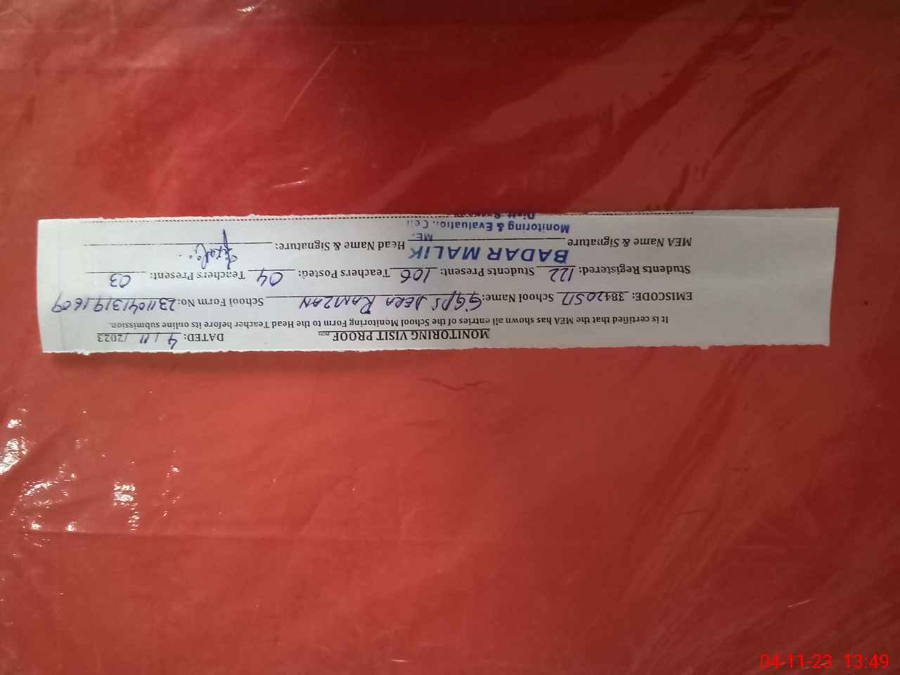 | Attendance Register | Head Teacher | MEA with School | Visit Proof |