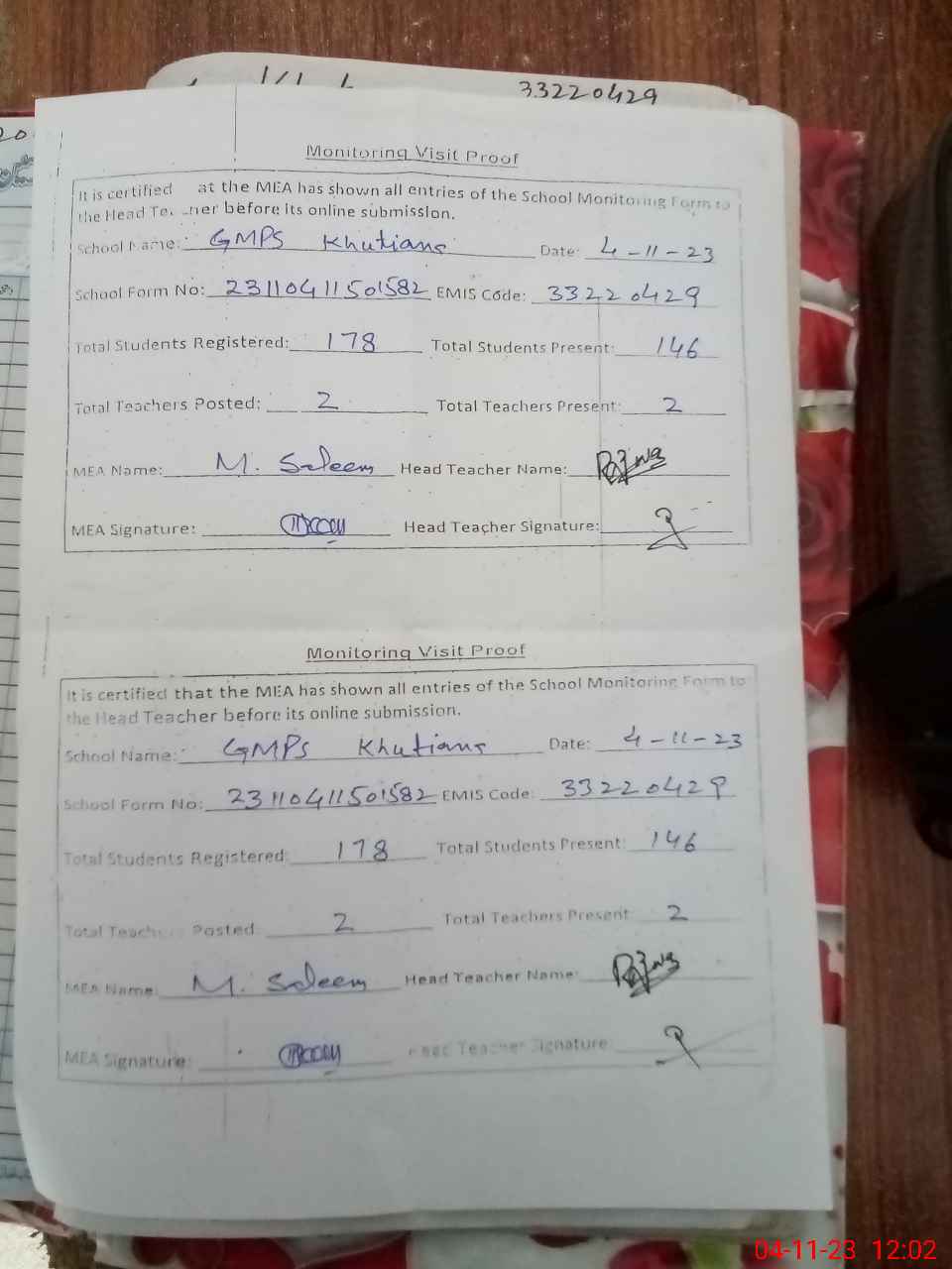 | EMIS Code: 33220429 | Name of School: GMPS KHUTIANA | |||