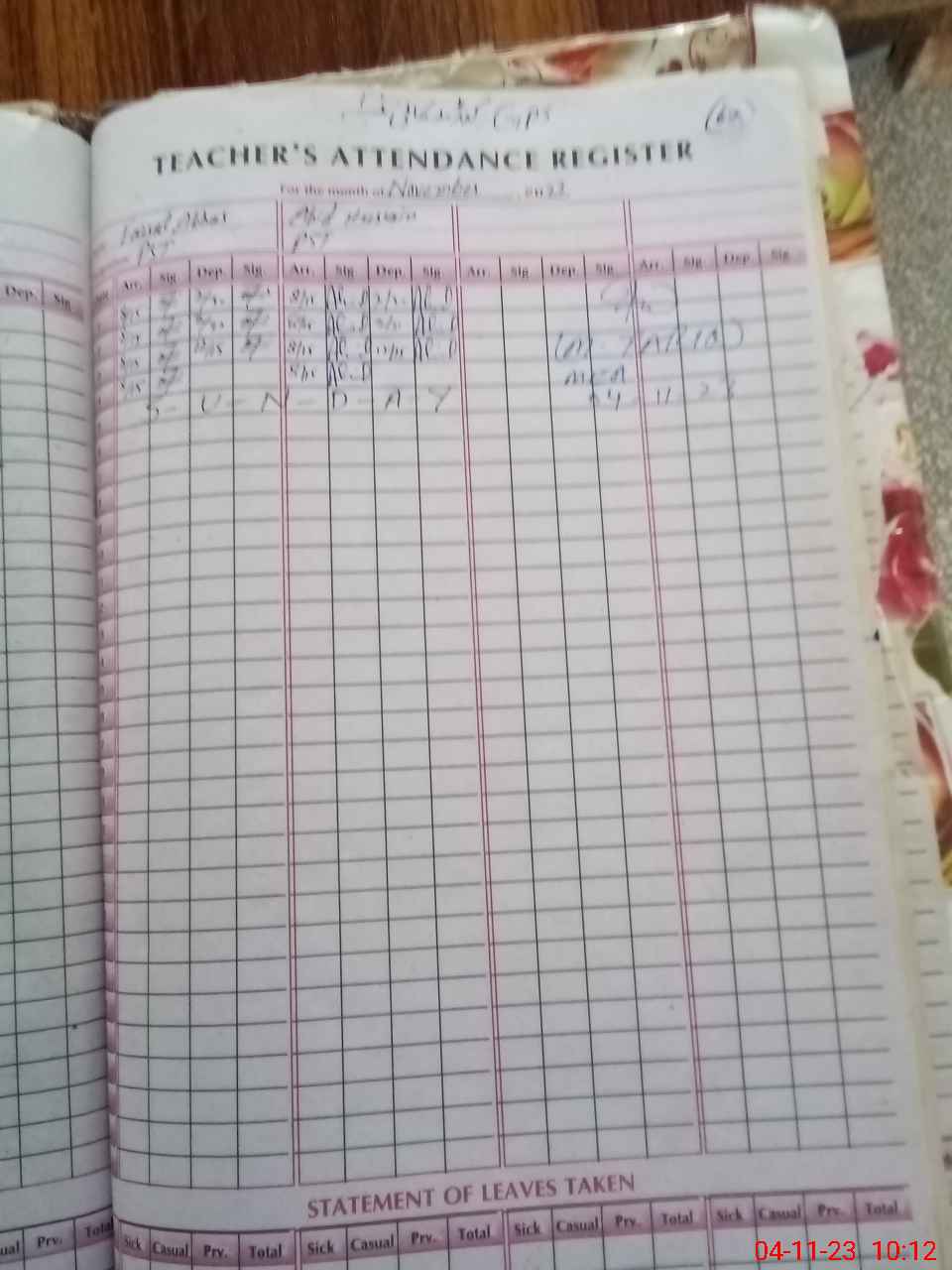 | Leave | Duty | Absent | Maternity | Medical | Ex- Pak |