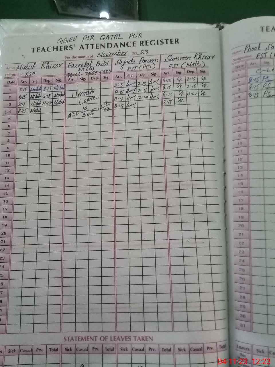 | Leave | Duty | Absent | Maternity | Medical | Ex- Pak |