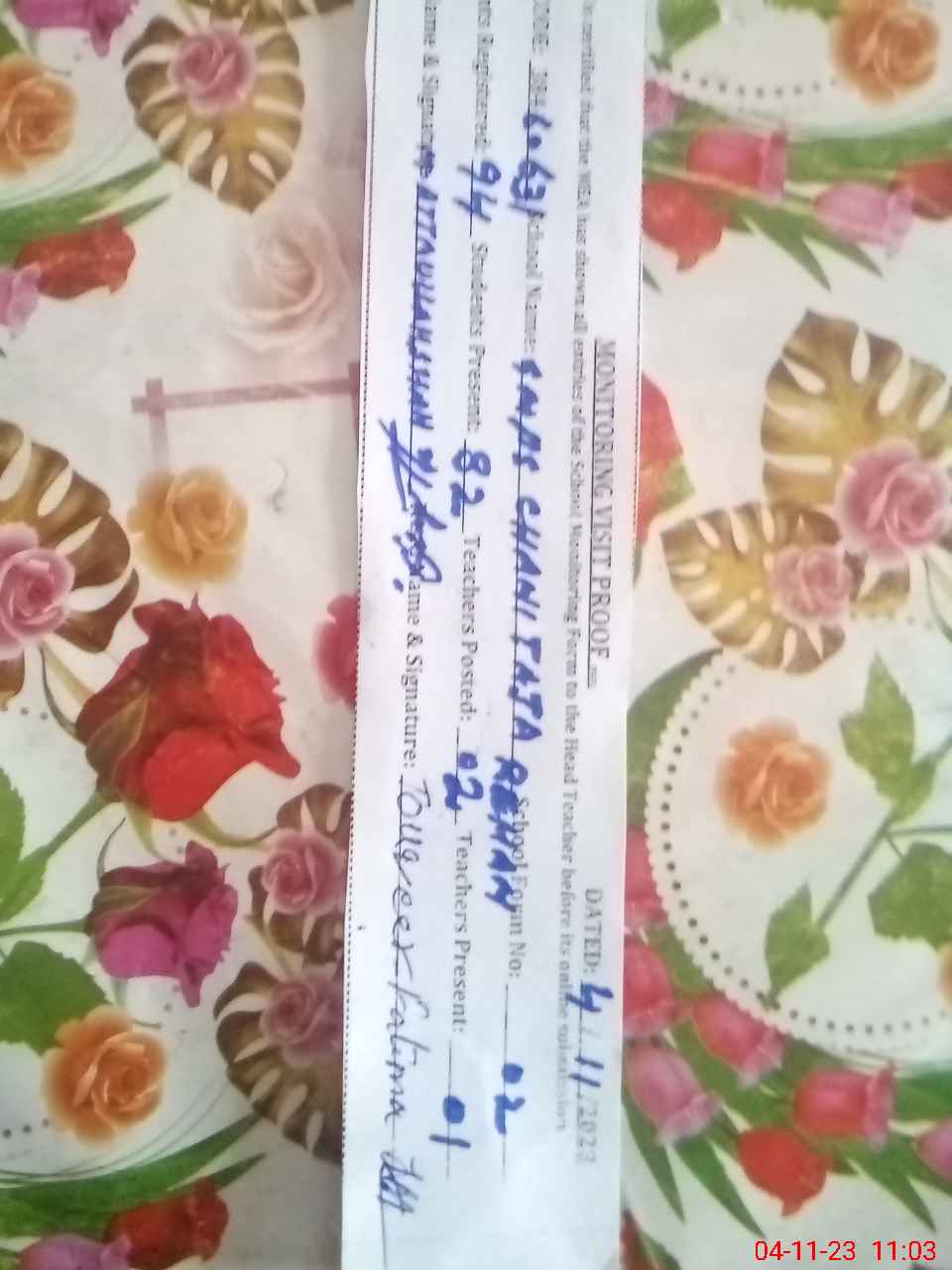 | Attendance Register | Head Teacher | MEA with School | Visit Proof |