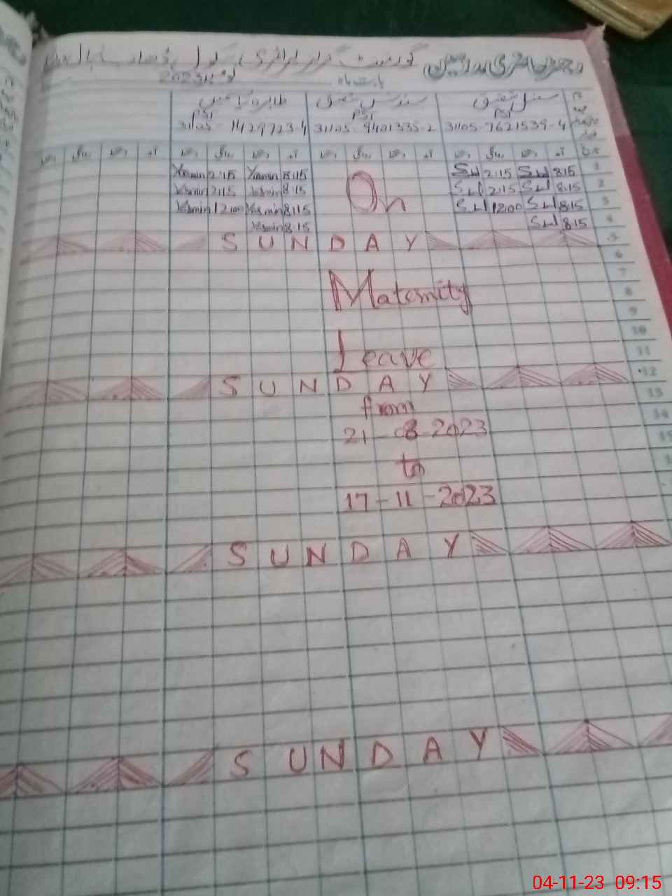 | 31**** | Su**** Sh**** | 1 | 30 | 0 | 0 | 30 | 0 | 0 | 0 | 0 | 0 | Maternity | |