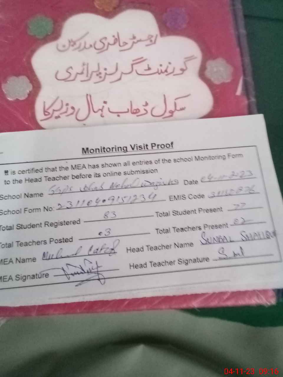 | EMIS Code: 31150276 | Name of School: GGPS DHAB NEHAL WAZIRKA | |||