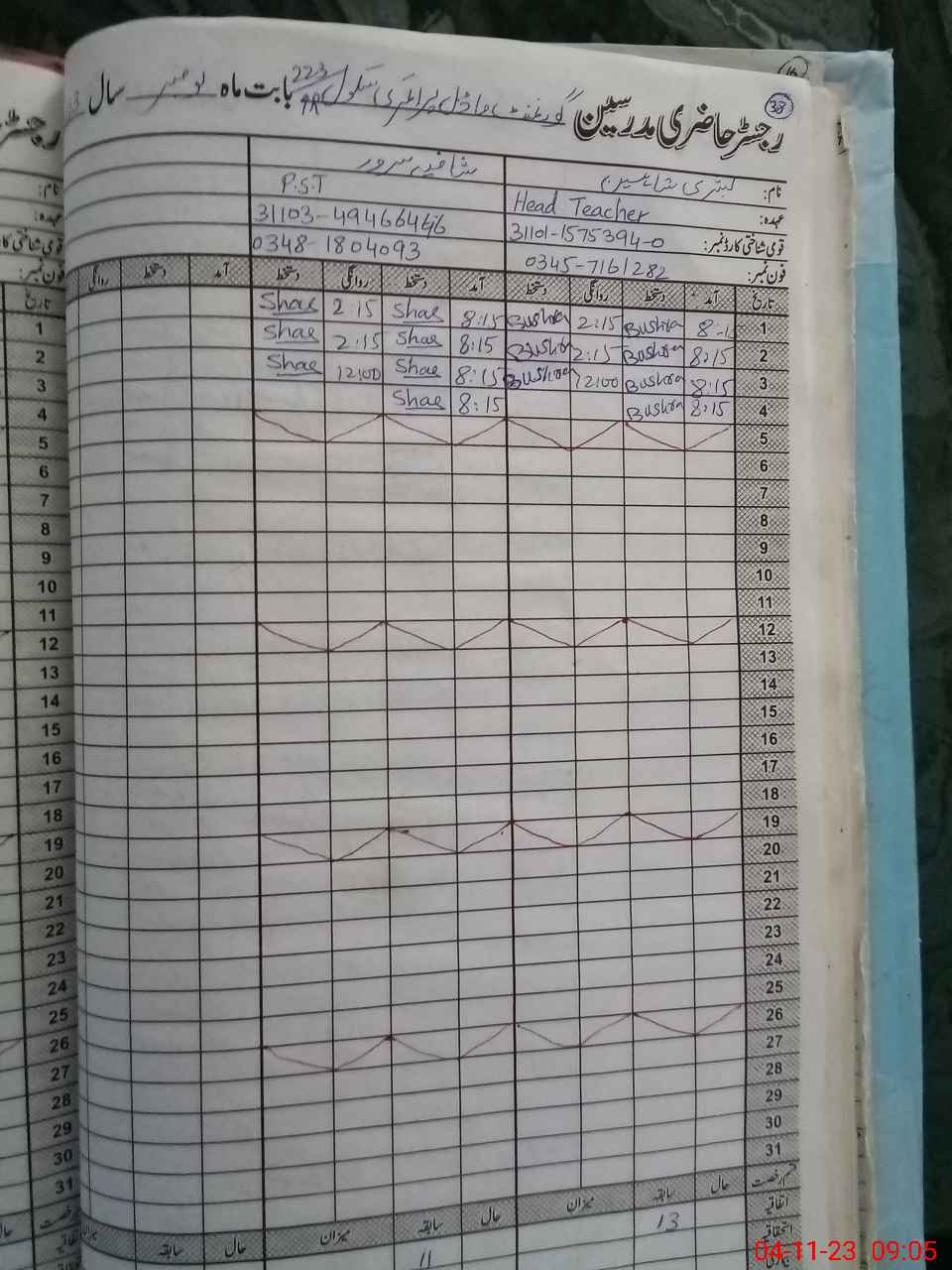 | Name: Bu**** Sh**** Designation: (School Headmaster's/Headmistress's) PST Phone/Cell Number: 03**** |