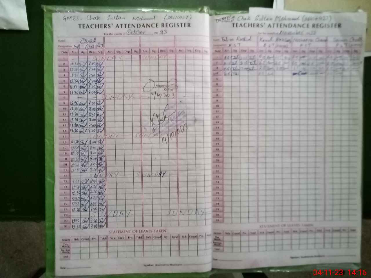 | Remarks (Use Separate Page if Required): NSB and FTF record register not updated from July to October 2023 and bank account statement also not available | |||||