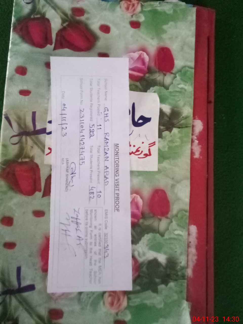 | EMIS Code: 32330343 | Name of School: GHS RAMZAN ABAD | |||