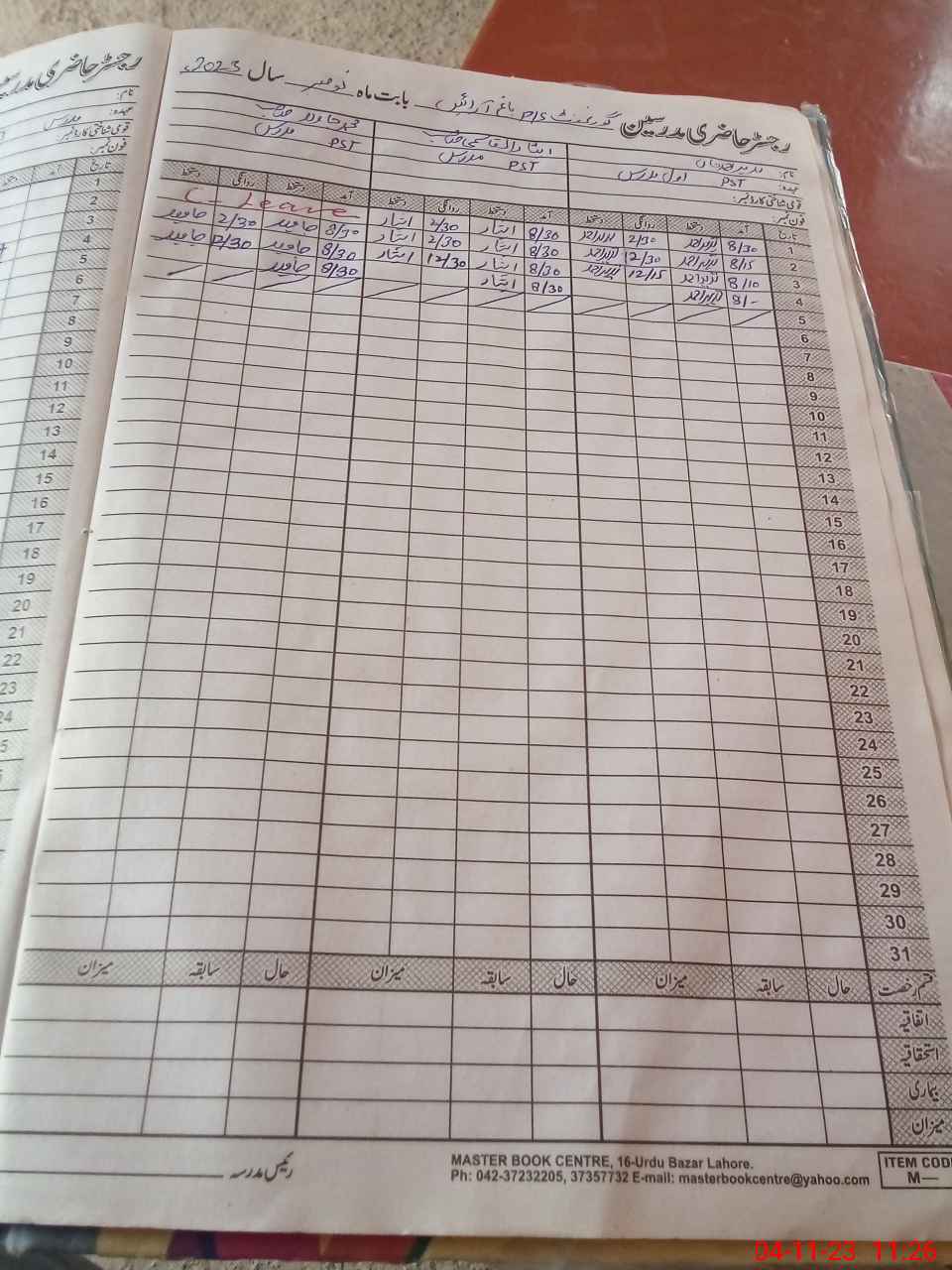 | CNIC | Full Name | Designation | R/C | Absence During Last Calender Month |
